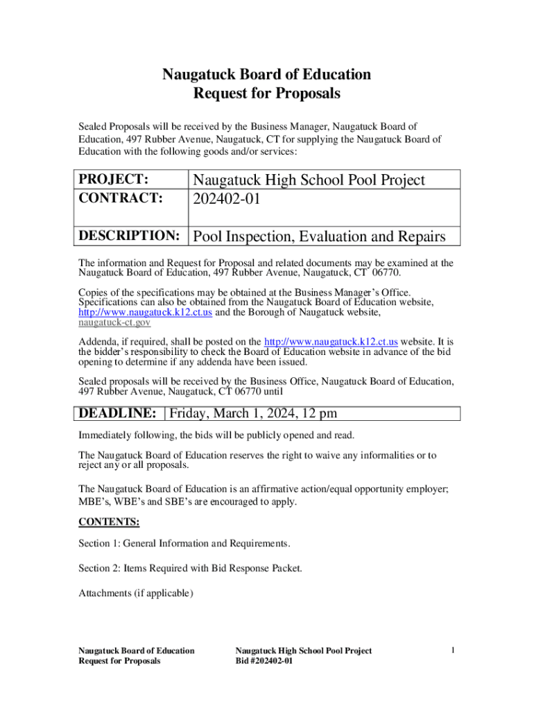 Get the free Naugatuck Board of Education Request for Proposals Naugatuck ...