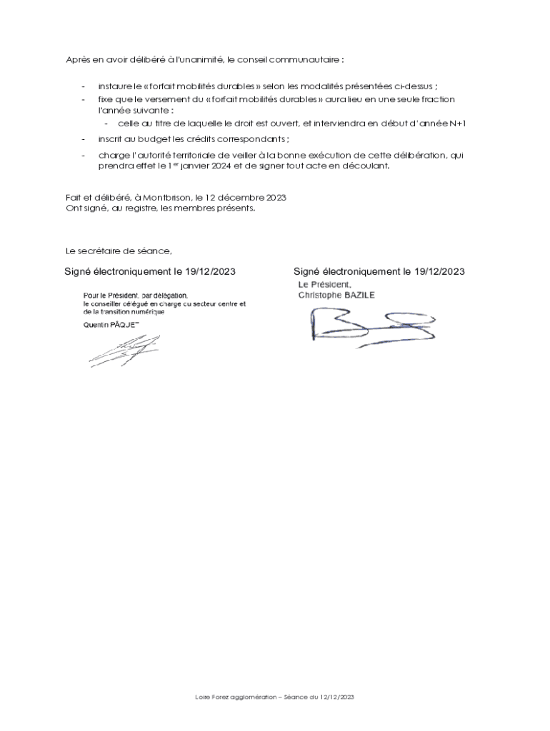 DEPARTEMENT DE LA LOIRE ARRONDISSEMENT DE MONTBRISONLOIRE FOREZ AGGLOMERATION ___ EXTRAIT DU REGISTRE DES DLIBRATIONS DU CONSEIL COMMUNAUTAIRE ___N 20231256Sance du mardi 12 dcembre 2023 OBJET : MISE
