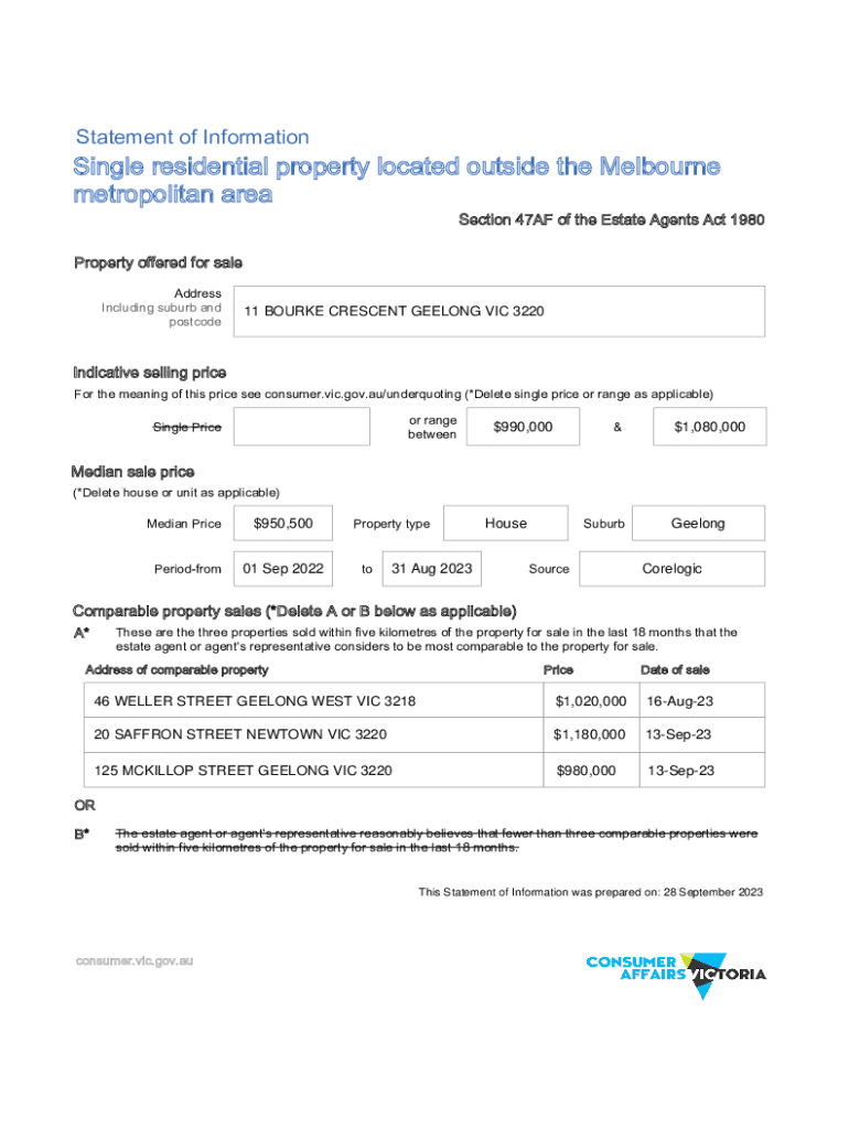 Statement of InformationSingle residential property located outside the Melbourne