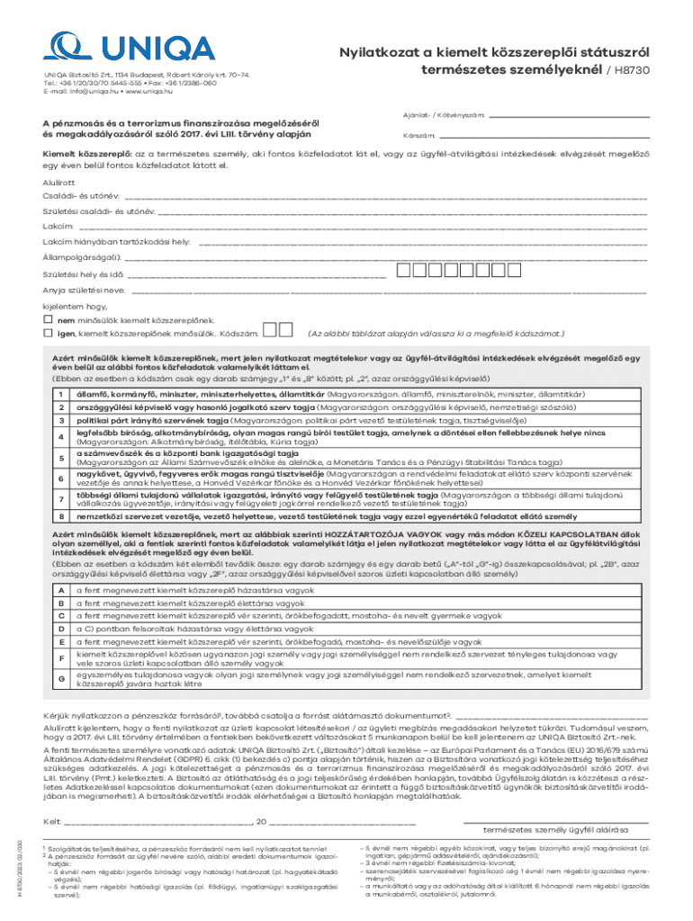 Get the free Nyilatkozat a kiemelt kzszerepli sttuszrl