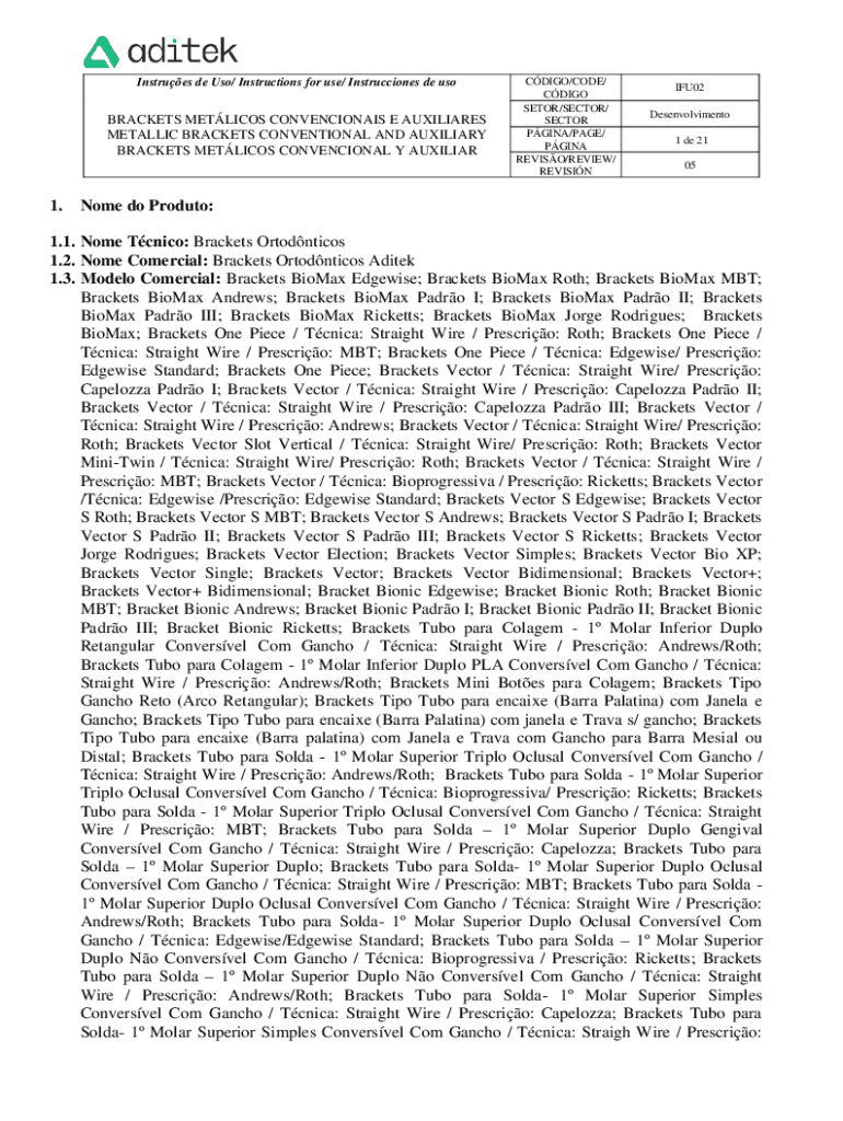 Instrues de Uso/ Instructions for use/ Instrucciones de usoBRACKETS METLICOS CONVENCIONAIS E AUXILIARES METALLIC BRACKETS CONVENTIONAL AND AUXILIARY BRACKETS METLICOS CONVENCIONAL Y AUXILIAR1.CDIGO/CODE/