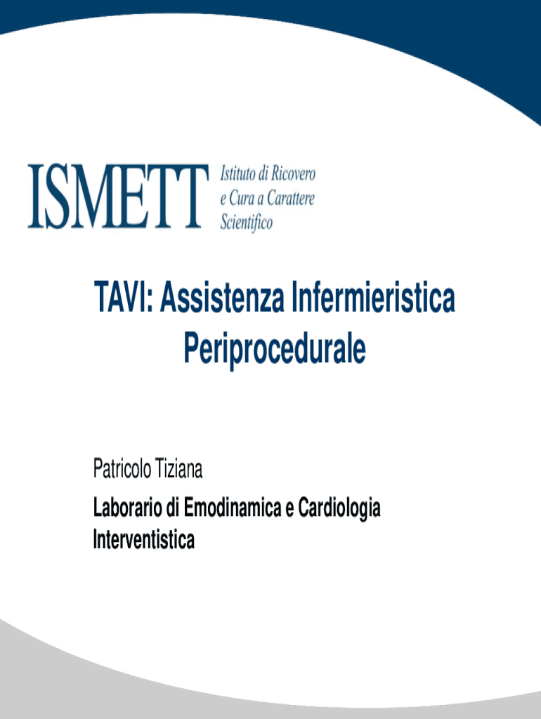 TAVI: Assistenza Infermieristica Periprocedurale Patricolo Tiziana Laborario di Emodinamica e Cardiologia InterventisticaAssistenza Infermieristica PeriproceduraleLa TAVI una procedura eseguita da