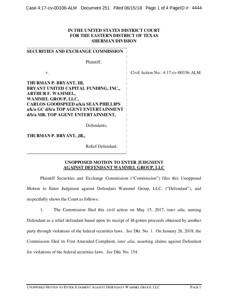 Get the free unopposed motion to enter judgment against defendant wammel ...