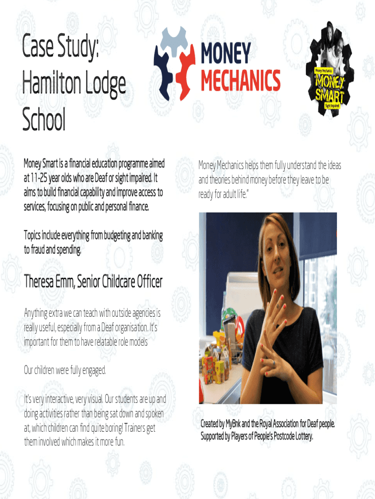 Case Study: Hamilton Lodge School Money Smart is a financial education program aimed at 1125-year-olds who are Deaf or sight impaired. It aims to build financial capability and improve access to services,