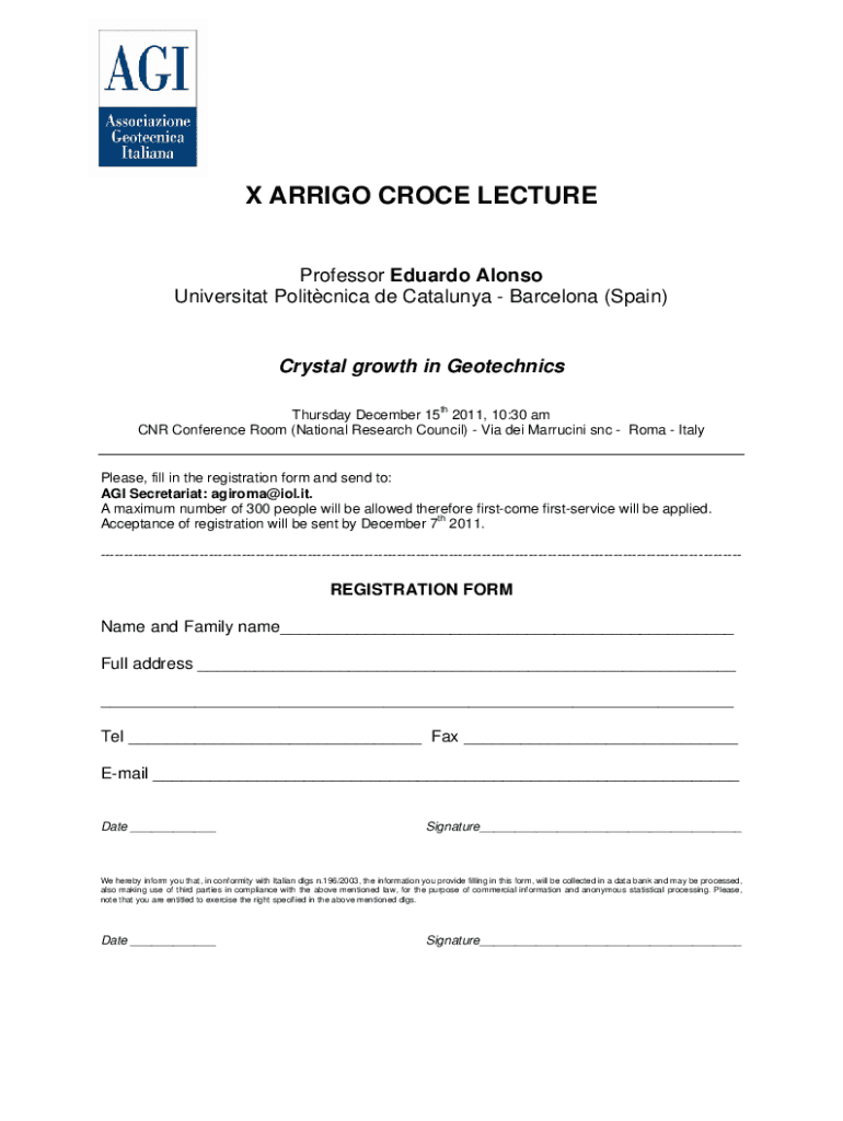 X ARRIGO CROCE LECTURE Professor Eduardo Alonso Universitat Politcnica de Catalunya Barcelona (Spain)Crystal growth in Geotechnics Thursday December 15th 2011, 10:30 am CNR Conference Room (National