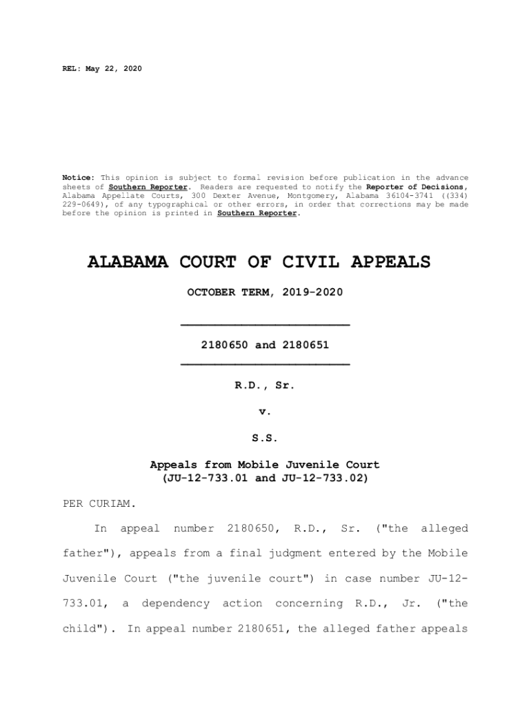 REL: May 22, 2020Notice: This opinion is subject to formal revision before publication in the advance sheets of Southern Reporter. Readers are requested to notify the Reporter of Decisions, Alabama