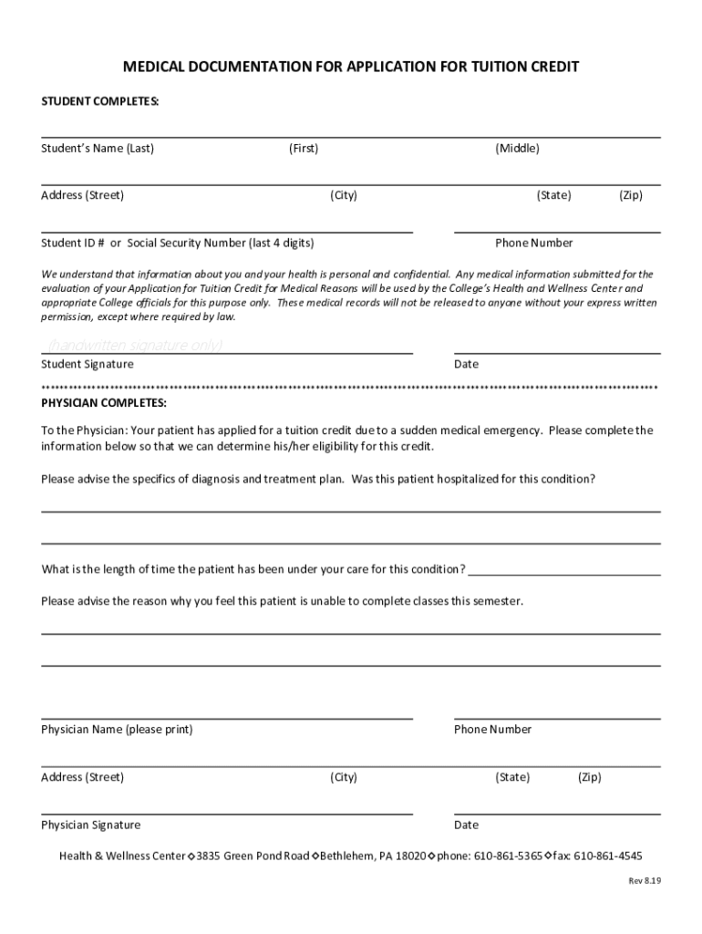 MEDICAL DOCUMENTATION FOR APPLICATION FOR TUITION CREDIT