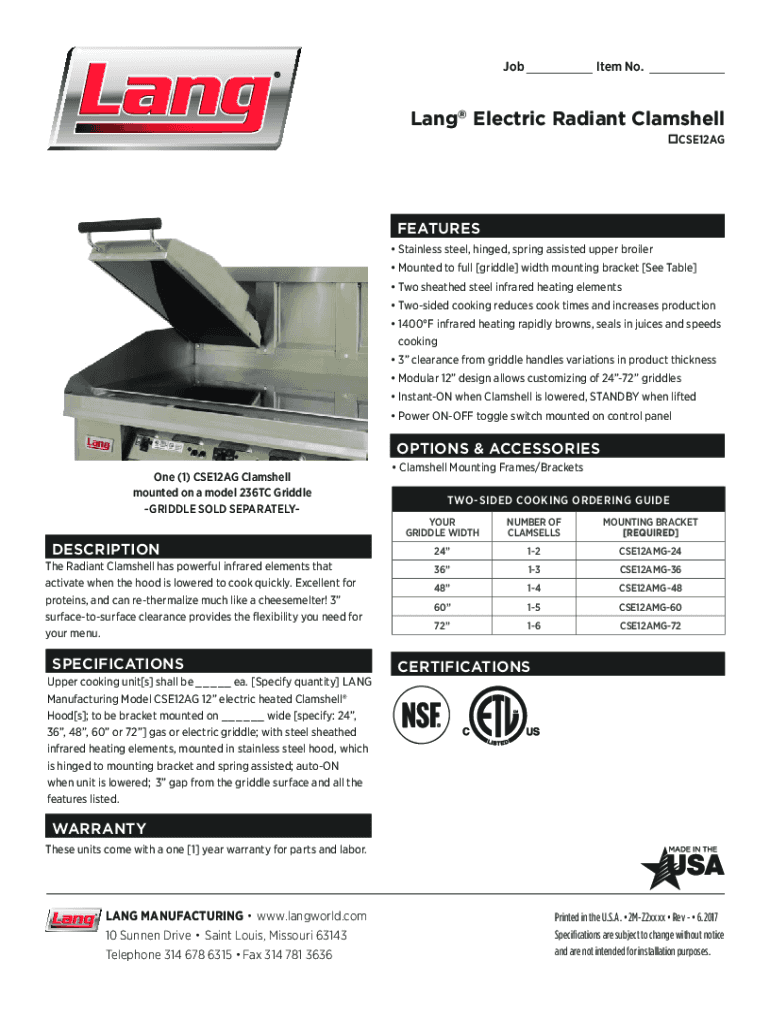 Joined No. Lang Electric Radiant Clamshell
