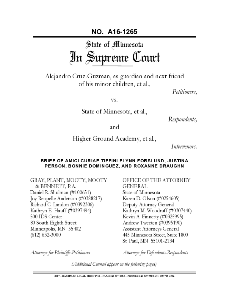 NO. A161265State of MinnesotaIn Supreme Court Alejandro CruzGuzman, as guardian and next friend of his minor children, et al., Petitioners, vs. State of Minnesota, et al.,Respondents,and Higher Ground