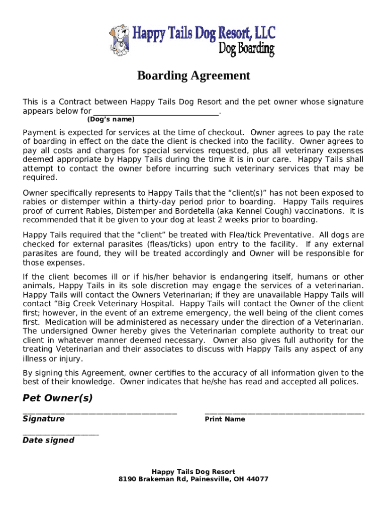 DOG BOARDING AGREEMENT Sample Clauses word template: frequently asked questions