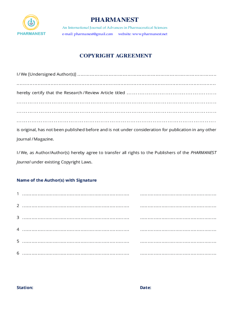 email: pharmanest@gmail.comwebsite: www.pharmanest.netCOPYRIGHT AGREEMENTI / We [Undersigned Author(s)] .........................................................................................