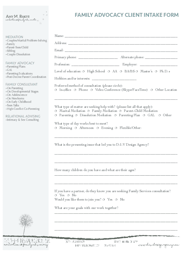 Get the free FAMILY ADVOCACY CLIENT INTAKE FORM