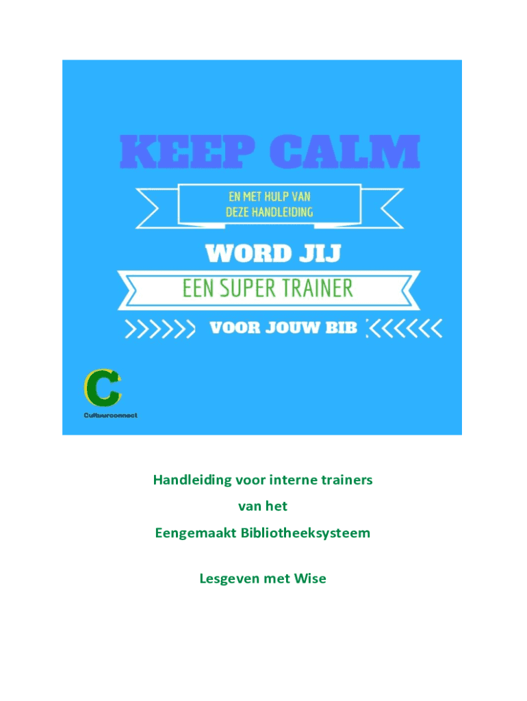 Handleiding voor interne trainers van het Eengemaakt Bibliotheeksysteem Lesgeven met WiseInleiding Super dat jij gekozen hebt om interne trainer te worden voor het bibliotheeksysteem. Je hebt jezelf