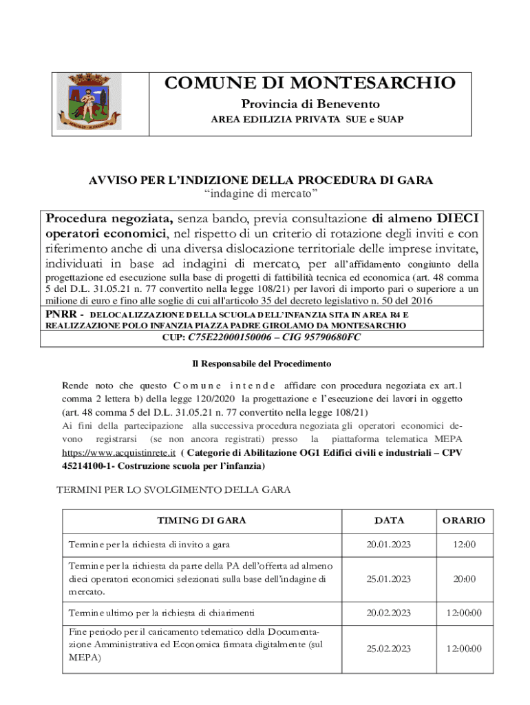 imagine DI mercatoProcedura negotiate, senna band, prefix consultation