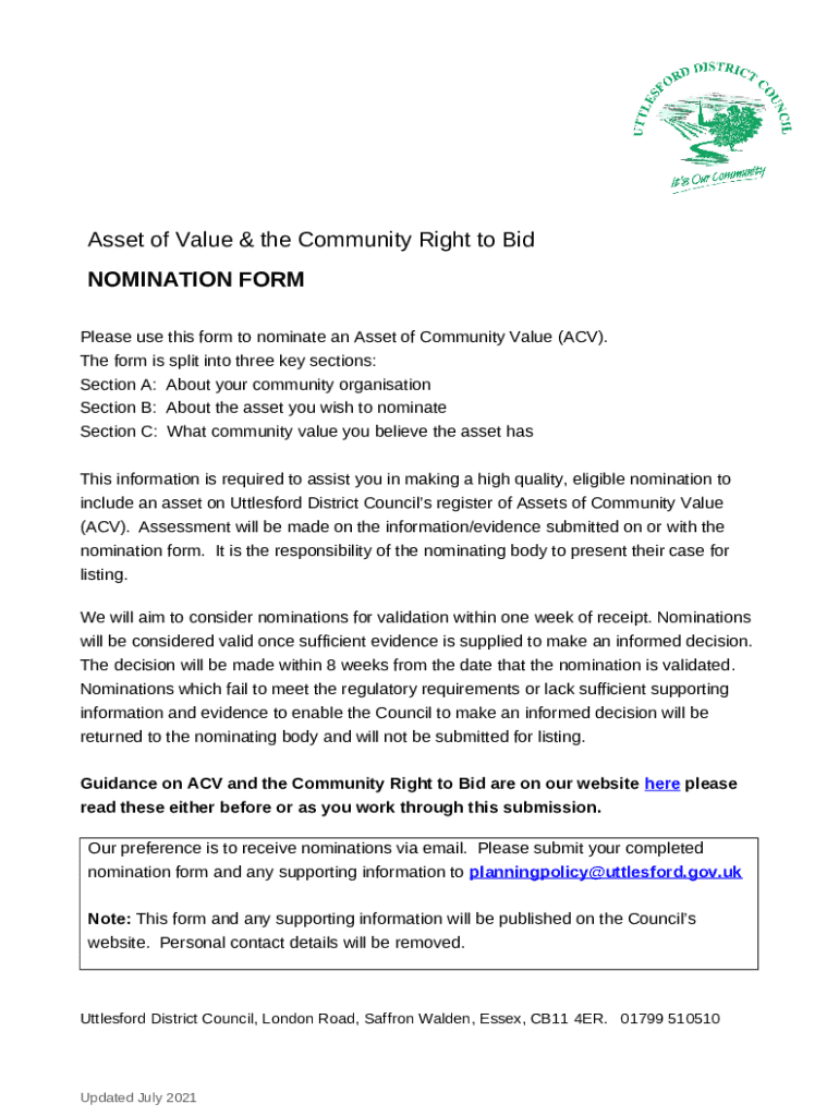 Instructions for the Nomination for the Local Heritage List form