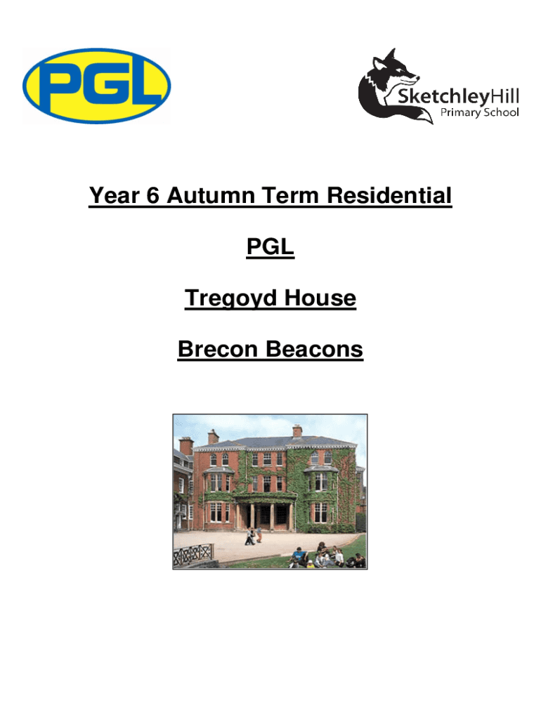 Year 6 Autumn Term Residential PGL Tregoyd House Brecon BeaconsIntroductionAs children move into year 6 we expect them to develop socially as well as academically. PGL provides an excellent starting