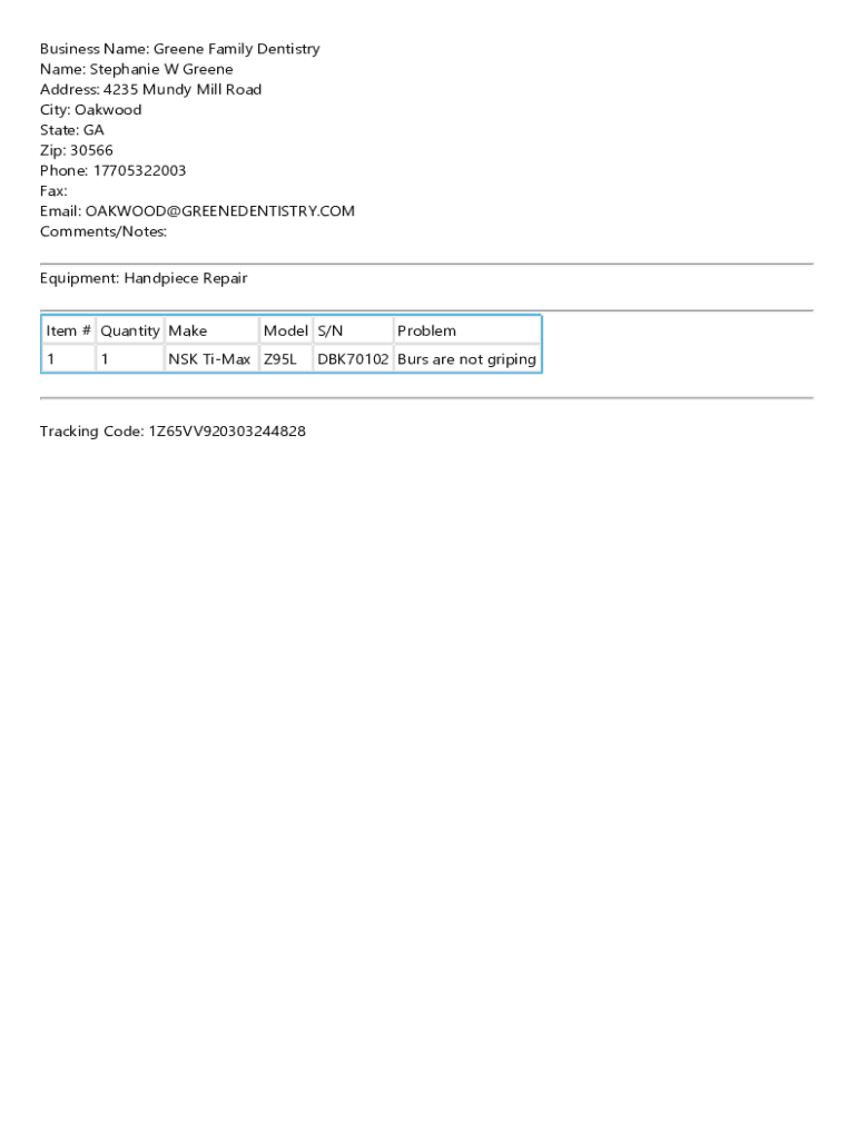 Business Name: Greene Family Dentistry Name: Stephanie W Greene Address: 4235 Muddy Mill Road City: Oak wood State: GA Zip: 30566 Phone: 17705322003 Fax: Email: OAKWOOD@GREENEDENTISTRY.COM Comments/Notes: