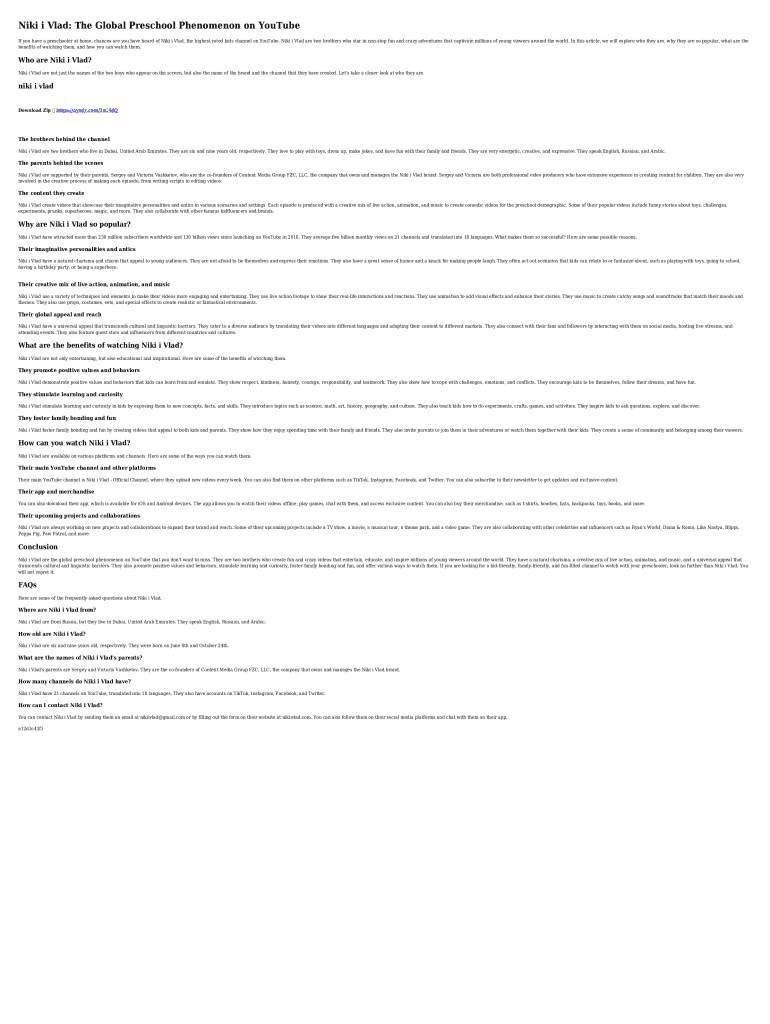 Niki i Vlad: The Global Preschool Phenomenon on YouTube If you have a preschooler at home, chances are you have heard of Niki i Vlad, the highest rated kids channel on YouTube. Niki i Vlad are two