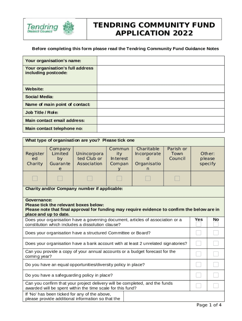 Instructions for the TENDRING COMMUNITY FUND APPLICATION 2022 form