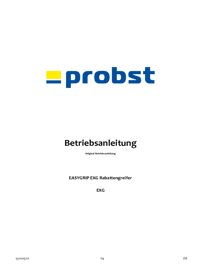 Betriebsanleitung Original BetriebsanleitungEASYGRIP EXG Rabattengreifer EXG53100370V4DEBitte beachten Sie, dass das Produkt ohne vorliegende Betriebsanleitung in Landessprache nicht eingesetzt /