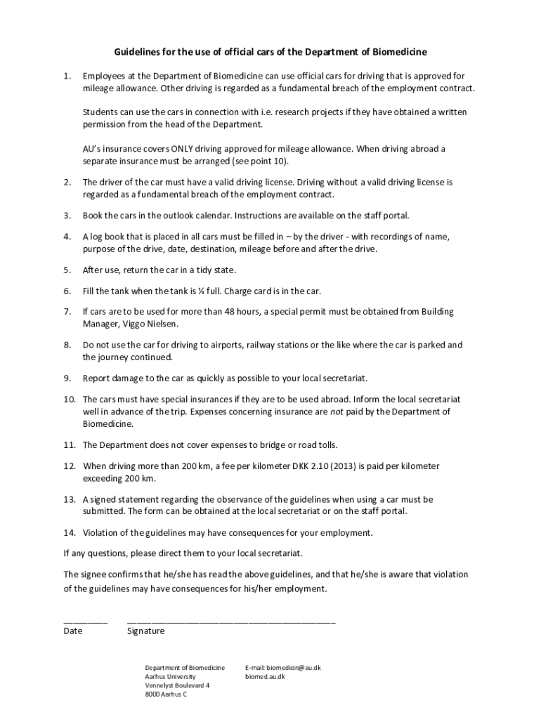 1. Employees at the Department of Biomedicine can use official cars for driving that is approved for