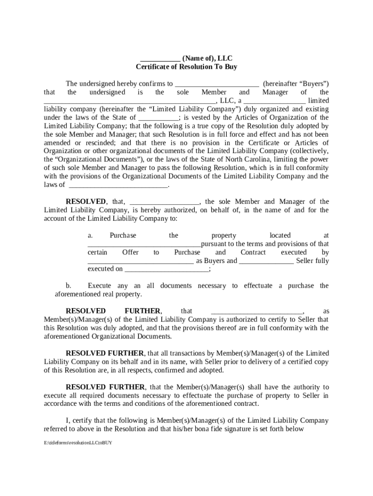 FAMILY REAL ESTATE LLC Certificate of Resolution To ... template instructions