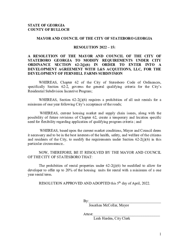 STATE OF GEORGIA COUNTY OF BULLOCH MAYOR AND COUNCIL OF THE CITY OF STATEBORO GEORGIA RESOLUTION 2022 15: A RESOLUTION OF THE MAYOR AND COUNCIL OF THE CITY OF STATEBORO GEORGIA TO MODIFY REQUIREMENTS