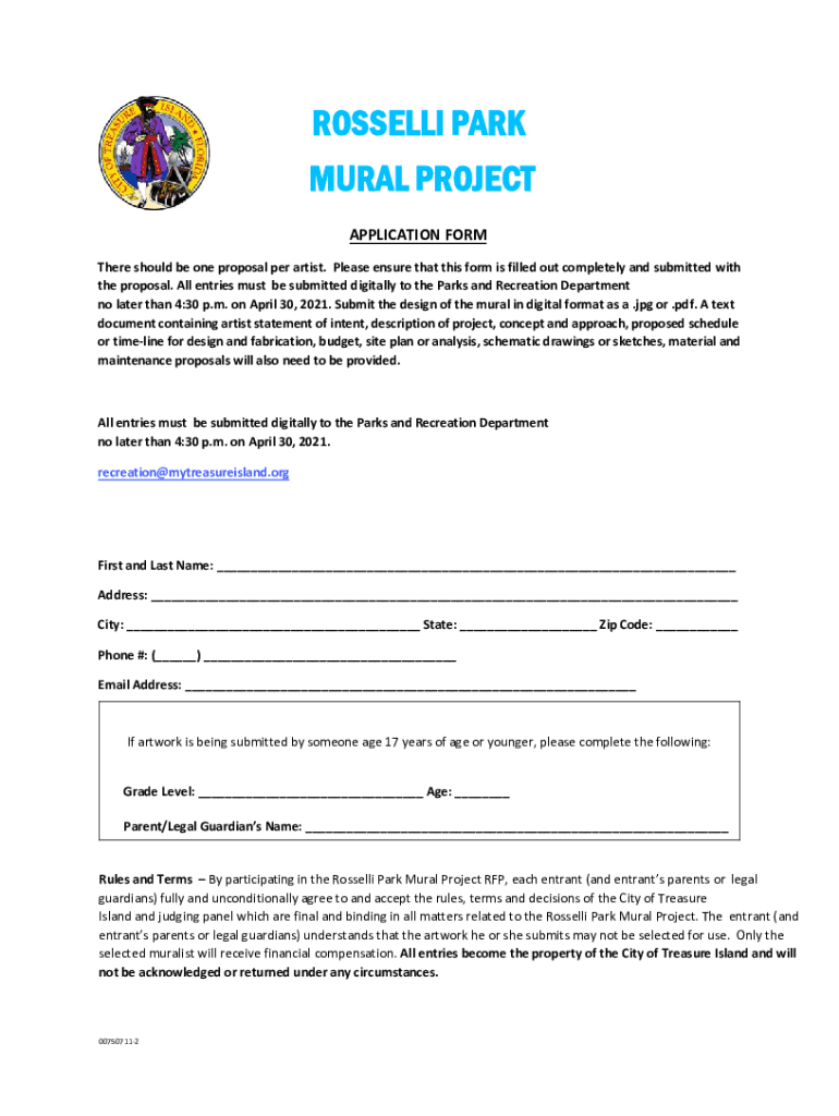 Call to Artists Request for Proposal (RFP) Rosselli Park Concession Stand Mural Project Project Summary The City of Treasure Island Parks and Recreation Department is soliciting original murals for