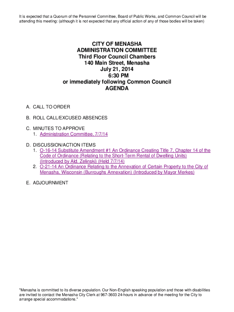 It is expected that a Quorum of the Personnel Committee, Board of Public Works, and Common Council will be attending this meeting: (although it is not expected that any official action of any of those