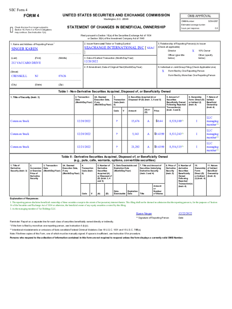 Employees of Seachange International Inc may also need to complete the SEAC form for internal record keeping purposes.