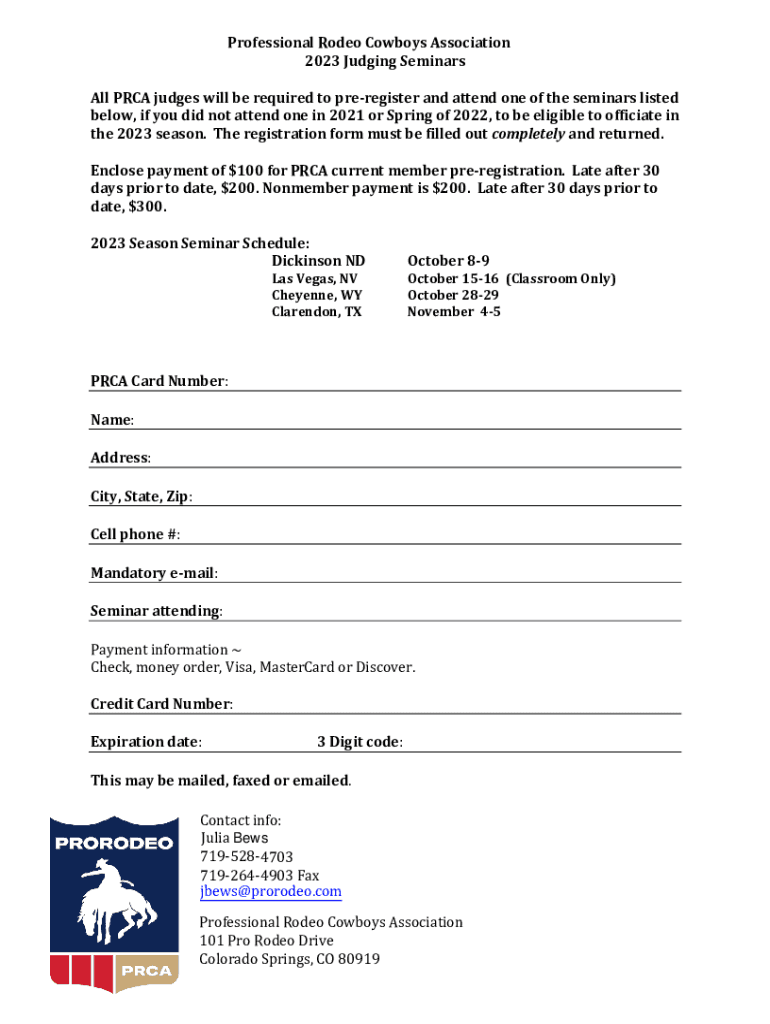 All PRC judges will be required to preregister and attend one of the seminars listed