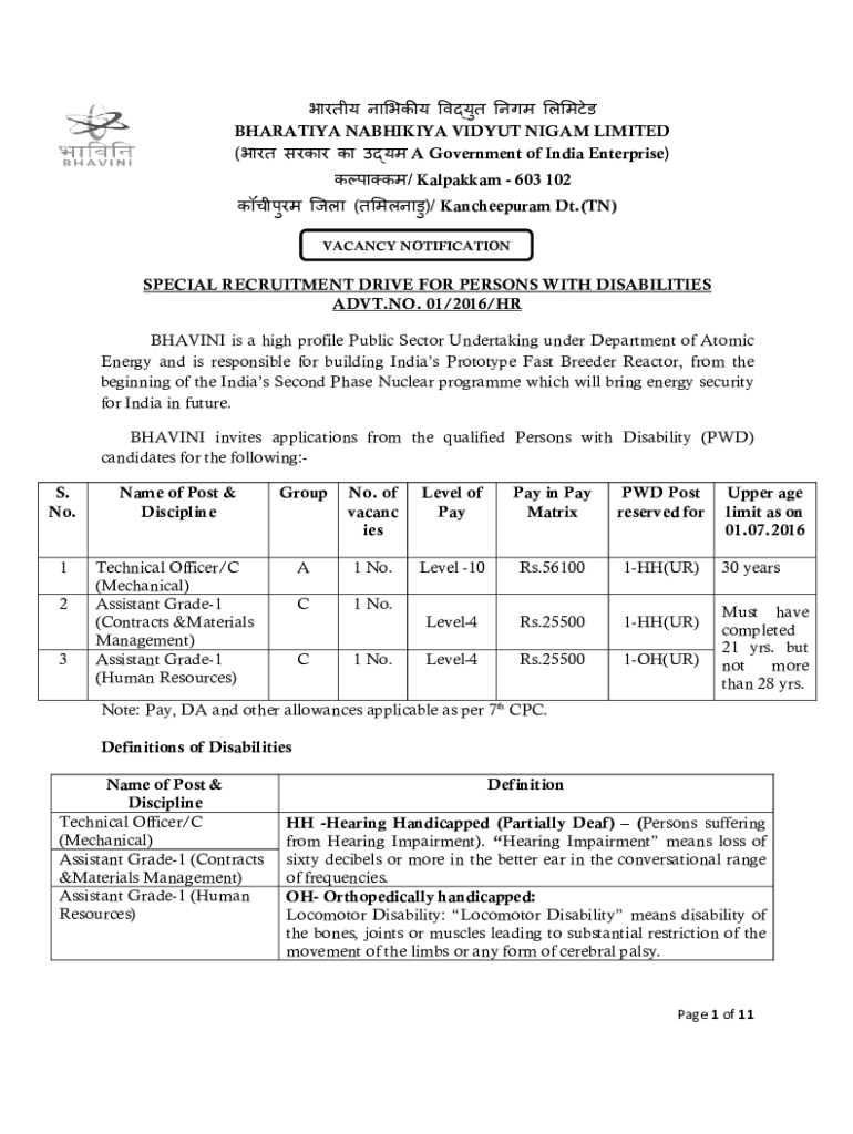 VACANCY NOTIFICATIONSPECIAL RECRUITMENT DRIVE FOR PERSONS WITH DISABILITIES