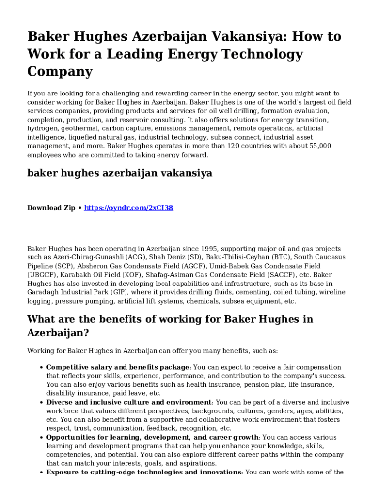 Baker Hughes Azerbaijan Vakansiya: How to Work for a Leading Energy Technology Company If you are looking for a challenging and rewarding career in the energy sector, you might want to consider working