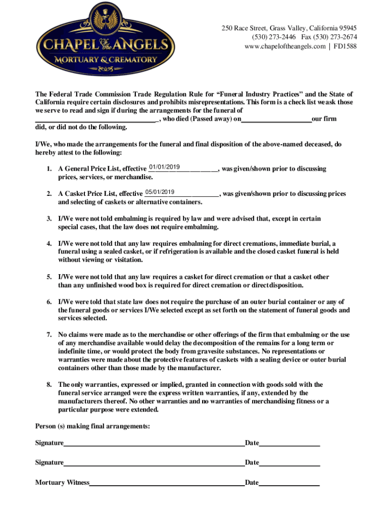 250 Race Street, Grass Valley, California 95945 (530) 2732446 Fax (530) 2732674 www.chapeloftheangels.com | FD1588The Federal Trade Commission Trade Regulation Rule for Funeral Industry Practices