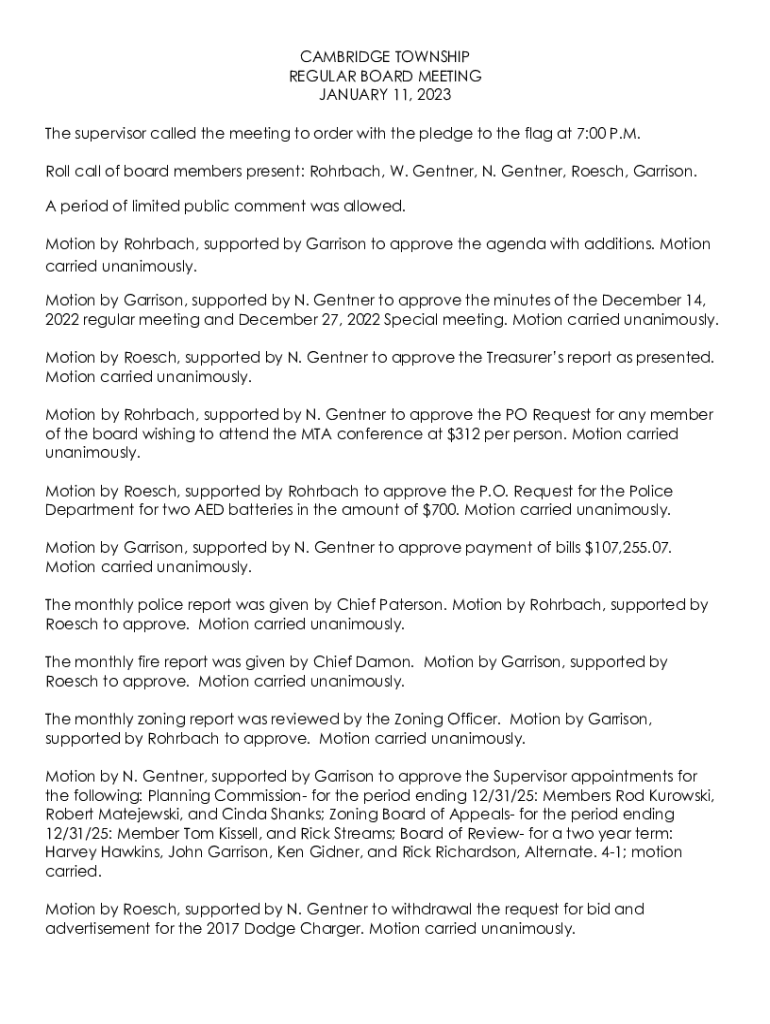 The supervisor called the meeting to order with the pledge to the flag at 7:00 P.M.
