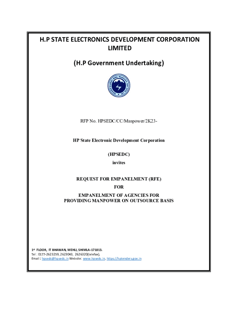 (H. P Government Undertaking)RFP No. HPS EDC/CC/Manpower/2K23HP State Electronic Development Corporation