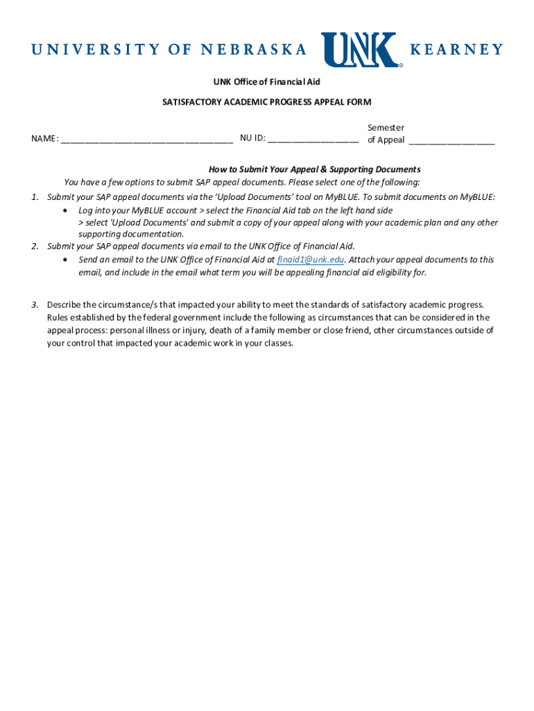 SATISFACTORY ACADEMIC PROGRESS APPEAL FORM
