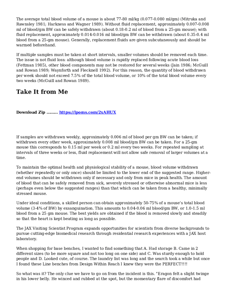 Get the free Blood volume determination in the mouse - PMC