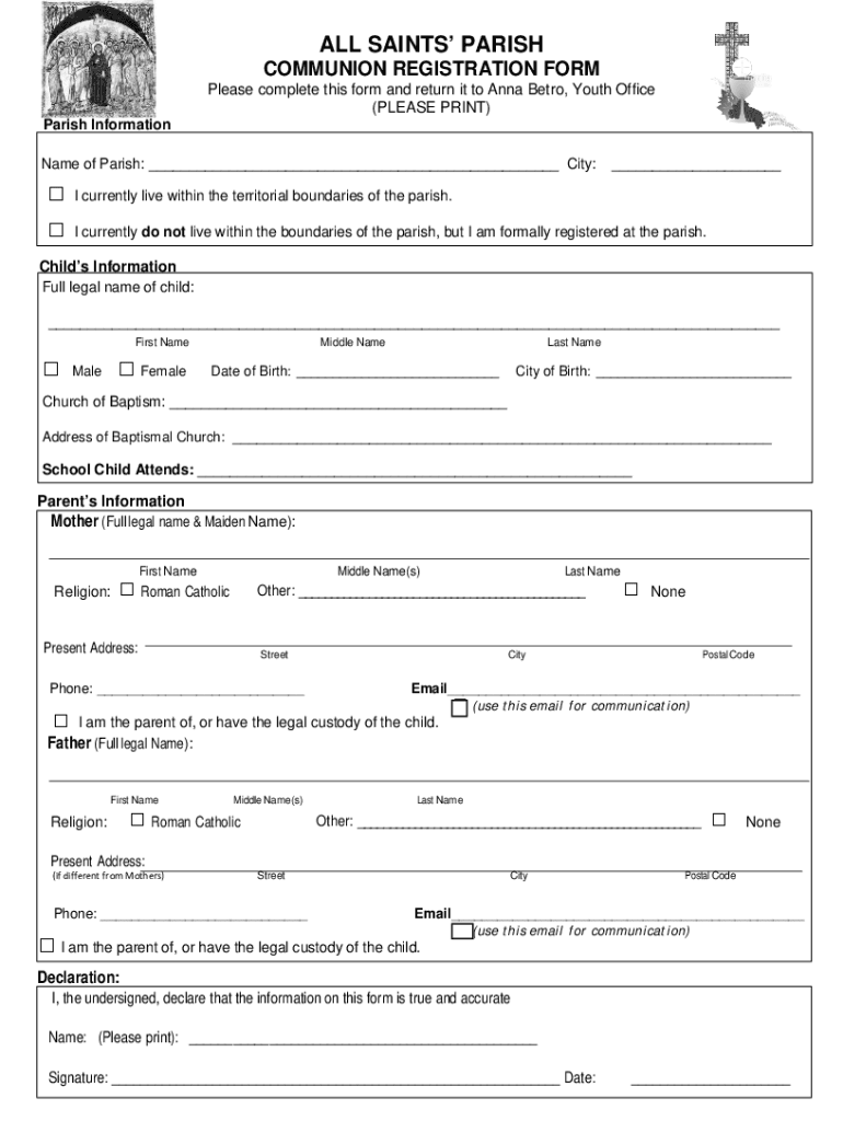 Get the free ALL SAINTS Registration form for First Communion.pdf