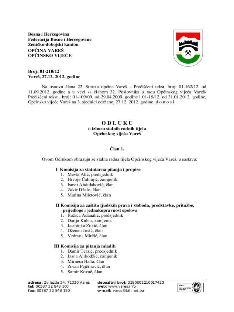 Get the free BV odluka o izboru komisija.doc
