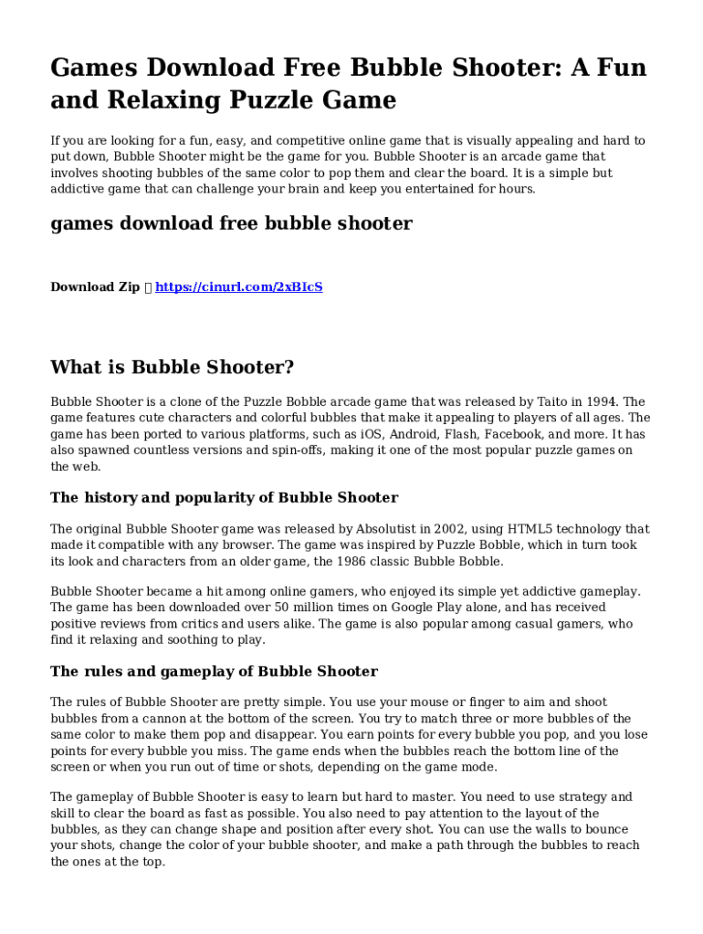 Games Download Free Bubble Shooter: A Fun and Relaxing Puzzle Game If you are looking for a fun, easy, and competitive online game that is visually appealing and hard to put down, Bubble Shooter might