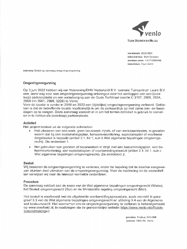..TEAM BOUWEN EN MILIEUons kenmerk 20220934 behandeld door MJH Derksen doorkiesnummer +31773599486 besluitdatum 5 juni 2023 onderwerp Besluit op aanvraag omgevingsvergunningOmgevingsvergunning Op