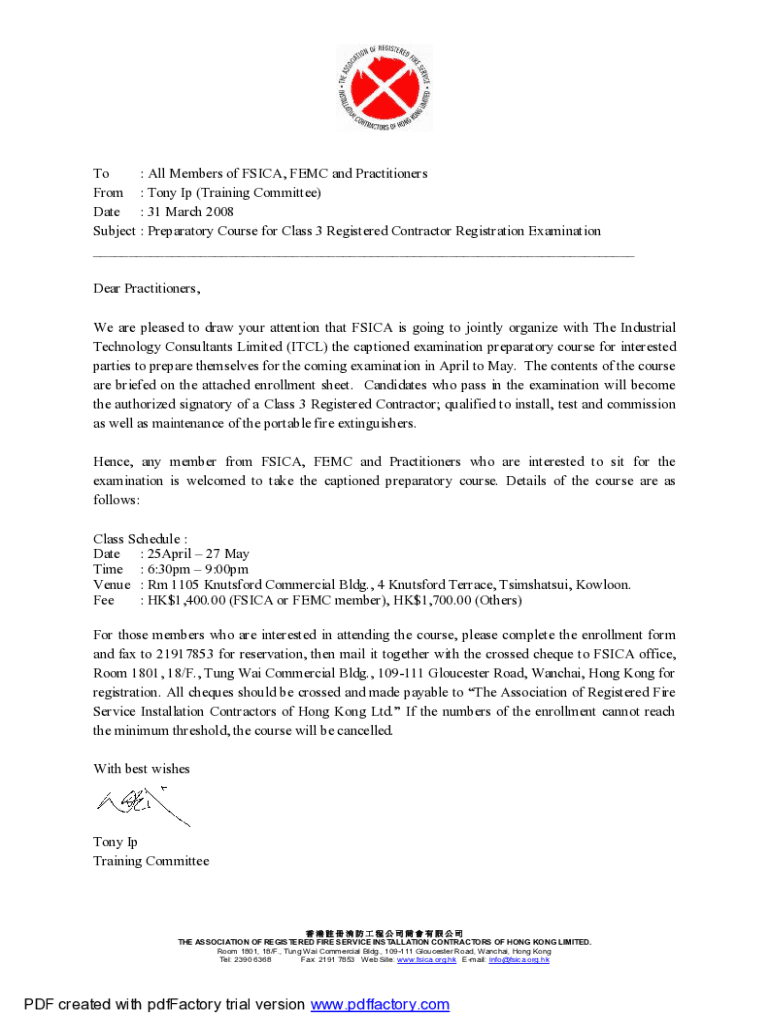 Subject : Preparatory Course for Class 3 Registered Contractor Registration Examination
