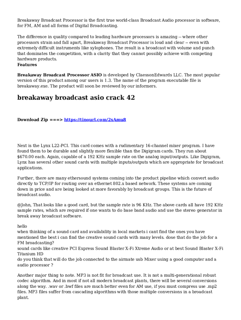 Breakaway Broadcast Processor is the first true world class Broadcast Audio processor in software,