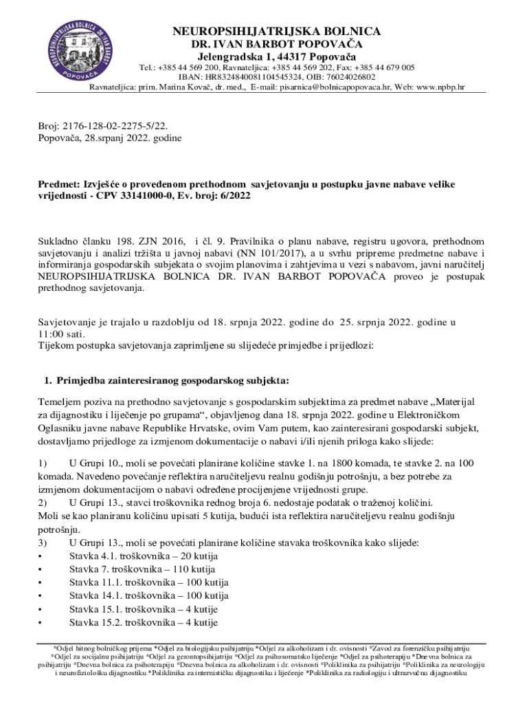 Get the free Neuropsihijatrijska bolnica Dr. Ivan Barbot Popovaa ...