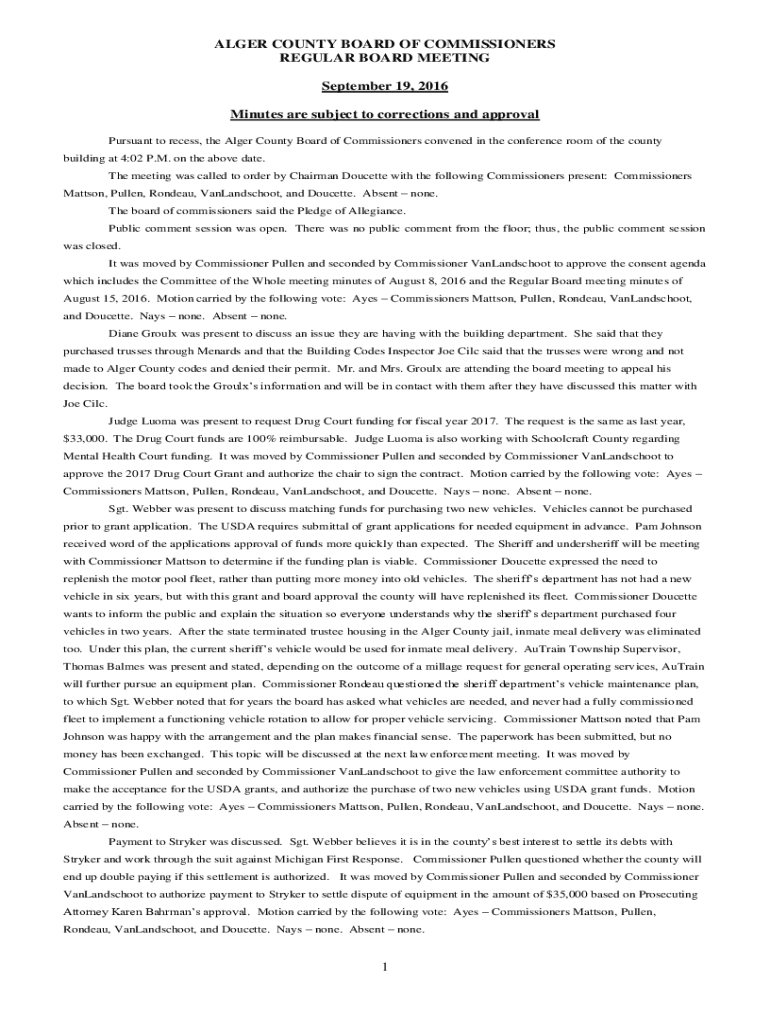 ALGER COUNTY BOARD OF COMMISSIONERS