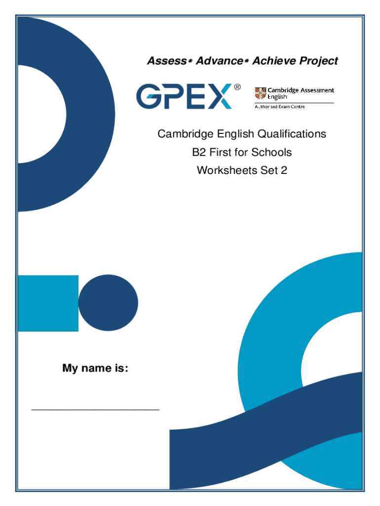 Assess Advance Achieve ProjectCambridge English Qualifications B2 First for Schools Worksheets Set 2My name is: ___Worksheet 1: Vocabulary 1. Complete the sentences with the correct words.1. Were
