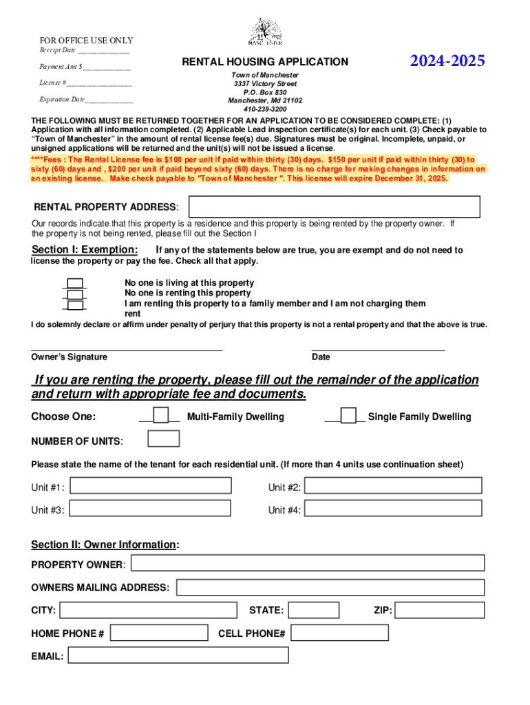 Receipt Date ___20242025RENTAL HOUSING APPLICATIONPayment Amt $___Town of Manchester