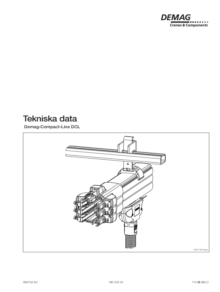 Tekniska data DemagCompactLine DCL42211044.eps080704 SV195 229 54714 IS 962.2TillverkareDemag Cranes & Components GmbH AntriebstechnikInnehllsfrteckning21 1.1 1.2Allmnt Symbolfrklaring DCLanlggning3