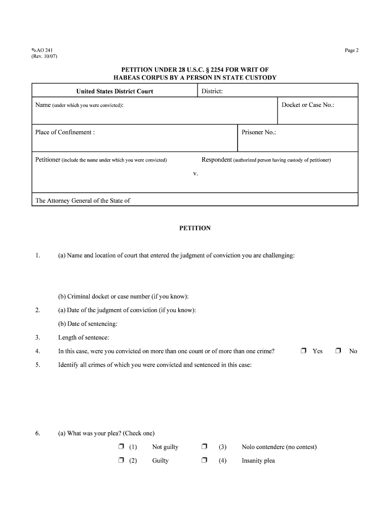 UNITED STATES DISTRICT COURT DISTRICT OF MINNESOTA PRO SE GUIDEBOOK FOR CASES FILED UNDER 28 U.S.C. 2254 February 2015 This Guidebook is intended to be an informative and practical resource for understanding